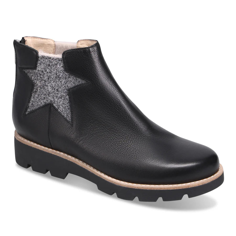 A little edge, a little whimsy—this ankle boot brings personality to your everyday. Designed with a bold star-shaped panel at the side, it combines a rugged sole with clean lines and a sleek silhouette. A back zip makes for easy on-and-off, while the cushioned sole keeps you grounded in comfort. Dixeys is the kind of boot that adds just the right spark to any outfit.