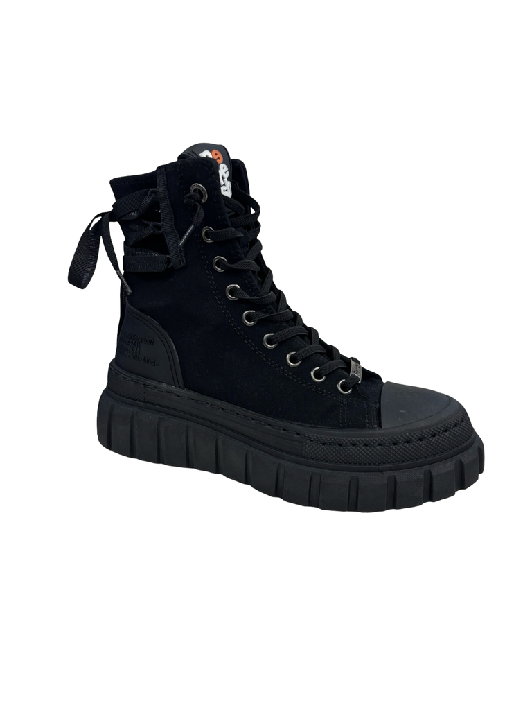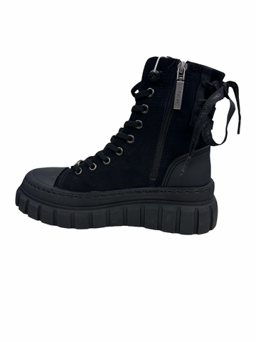 Refresh your footwear collection with the Refresh Lila boot. Featuring a convenient side zip for easy entry and soft black canvas, this boot combines cool style with superior comfort. The back lace detailing adds a unique, fashionable touch, making it a versatile choice for both casual and chic looks. Experience the perfect blend of comfort and trend-forward design in every step.