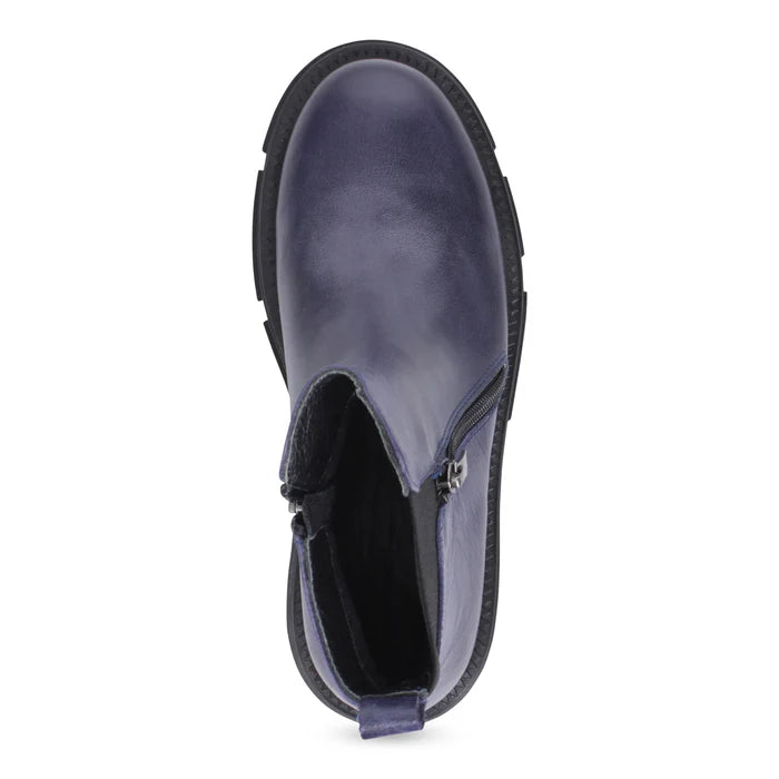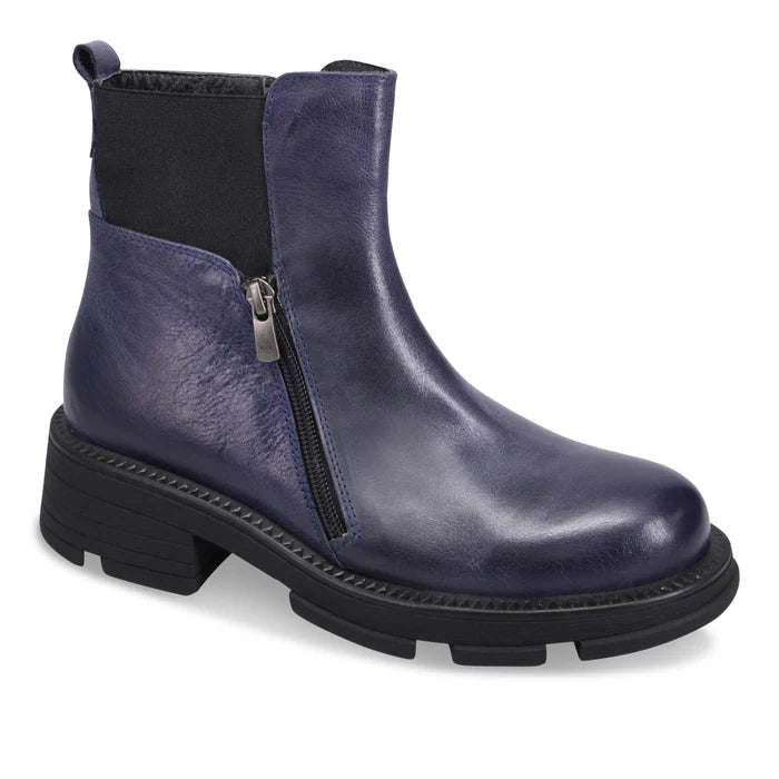 Make a bold move in this teal leather ankle boot with a modern, utilitarian edge. Designed with a rugged black lug sole and dual detailing—zip closure and side stretch panel—it’s equal parts functional and fashion-forward. That's Amore!